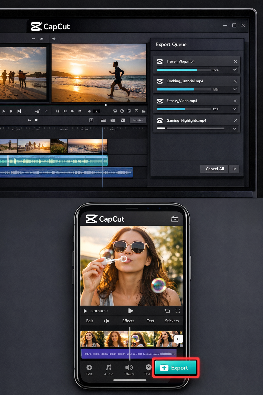 Minimize other applications during export. Be CapCut all the power of your device. Do not play games and video when exporting.